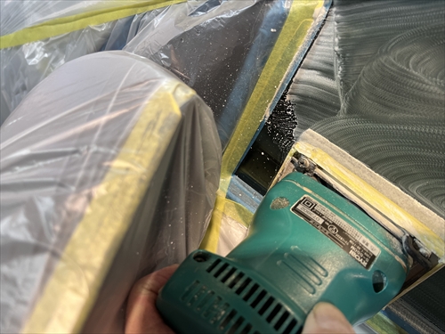 特殊溶剤とサンダーやポリッシャー等の研磨機材を使用してガラスを磨いていきます。
