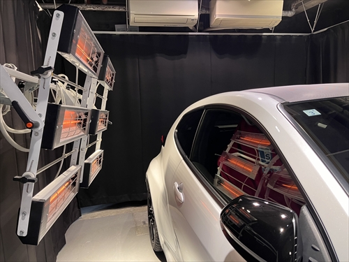 ガラス撥水コーティング施工後は、ヒーター乾燥処理をしていきます。
