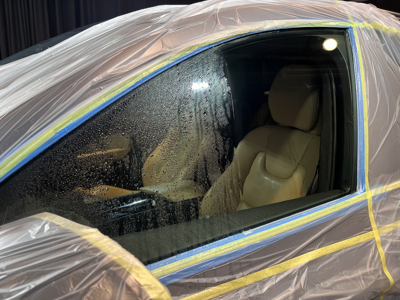ガラス撥水コーティング施工後は、ヒーター乾燥処理をしていきます。