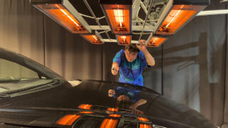 コーティング施工後はカーボンヒーターを使って、1パネル毎温度管理しながら乾燥処理をしていきます。