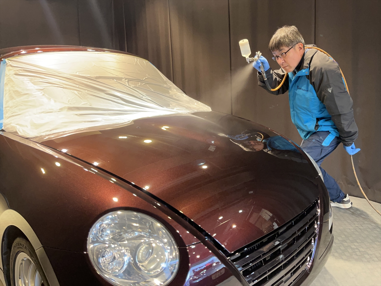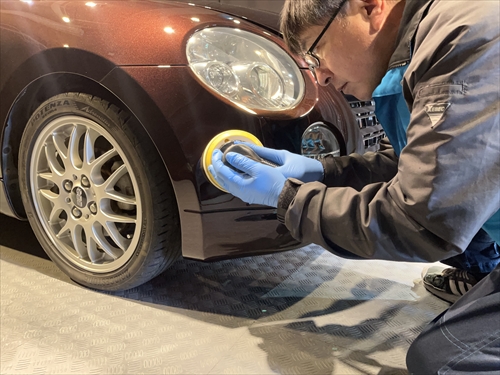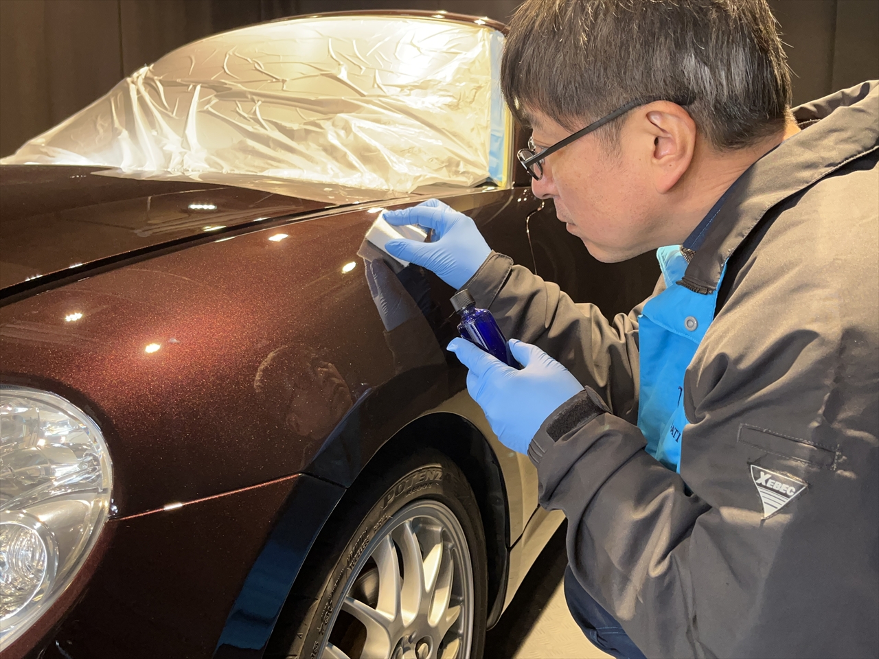 塗装修理箇所の磨き直しが終わったら、次はコーティングの部分施工に取り掛かります。