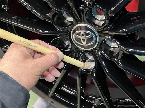 専用のガラスコーティングと防汚性UPコーティングを、ホイールの表・裏に2層ずつコーティング施工していきます。