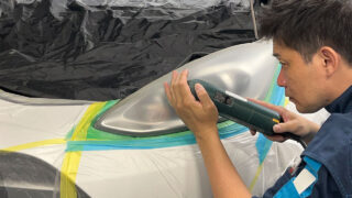 ティーズフィルムのヘッドライトリペアは、劣化被膜を研磨除去した上で新たな被膜を形成させる工法です。