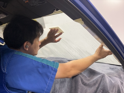 フロントガラスから施工していきます。