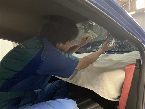 後部ガラス一式には「断熱スモーク15%」を施工していきます。
