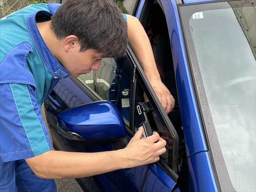 フィルムの型取りをした後、内張りの取り外しや養生等の準備をしたらフィルム施工に取り掛かります。