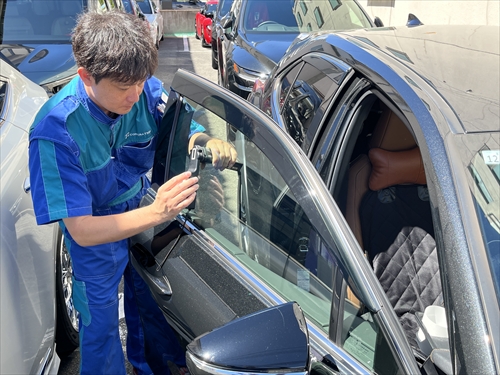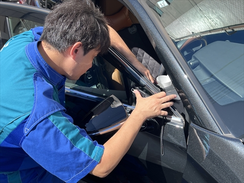 フィルムの型取りをした後、内張りの取り外しや養生等の準備をしたらフィルム施工に取り掛かります。