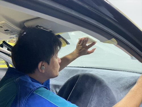 ガラス単体の可視光線透過率を事前に測定した上でお客様とご相談させていただいた結果、フロントガラスには「高透明遮熱フィルム IR-85HD」、フロントドアガラスには「透明断熱フィルムIRヒートカット」を施工させていただくことになりました。