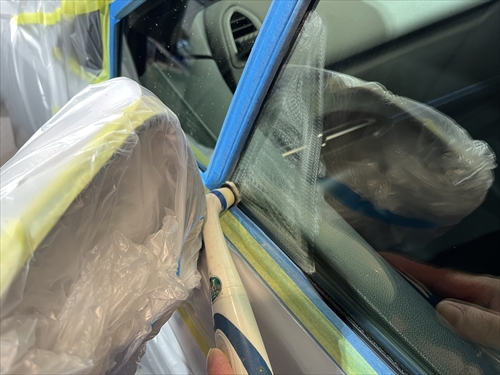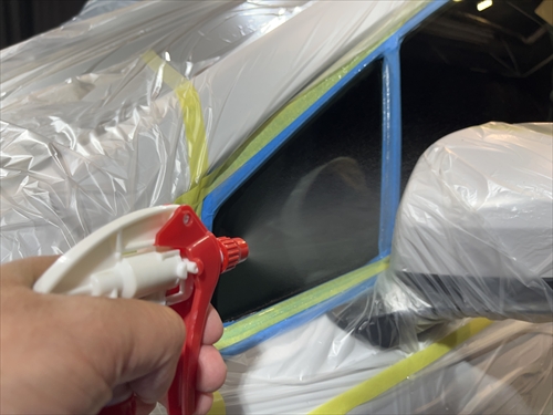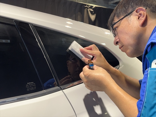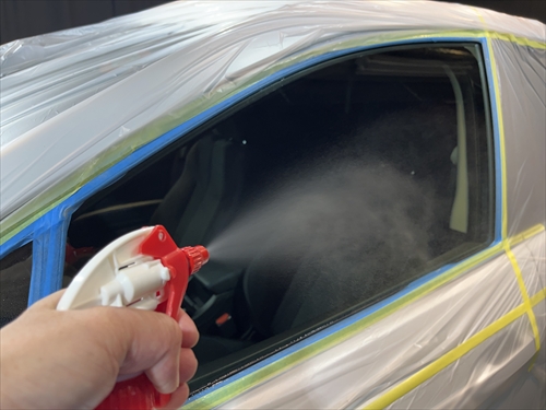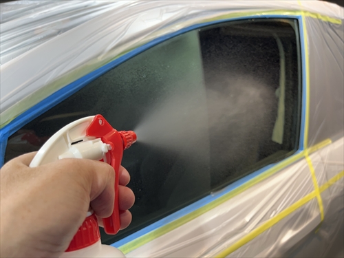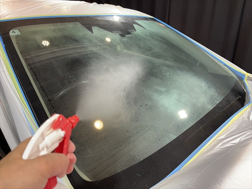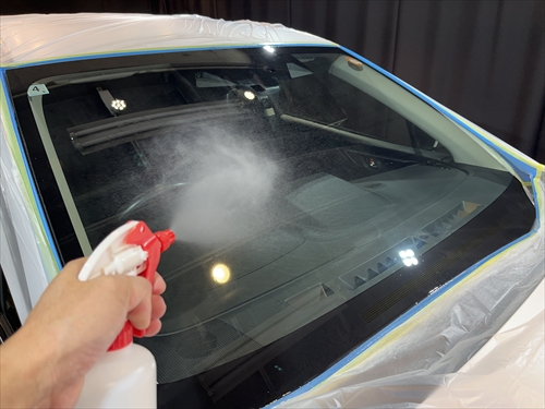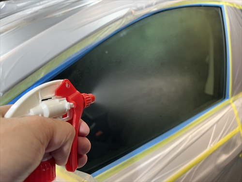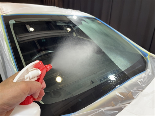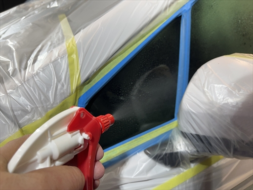 ガラス撥水コーティングを施工していきます。
