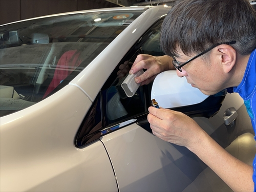 ティーズフィルムにご依頼いただければ、ただ単に塗るだけのような簡易的なコーティングではなく、プロの技術を駆使したガラス研磨によってクリアなガラスにした上でガラス撥水コーティングを施工させていただきます。