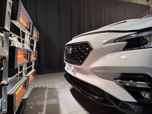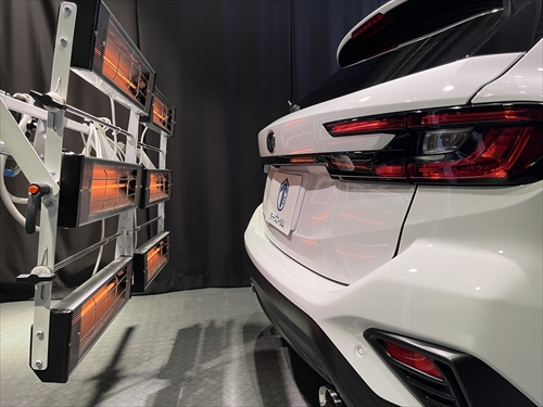 コーティング施工後はカーボンヒーターを使って1パネル毎温度管理しながら乾燥処理を施します。