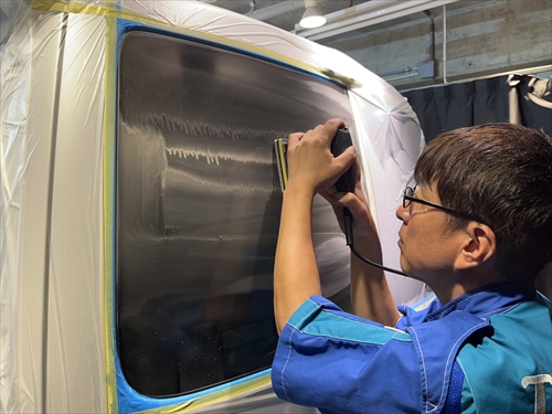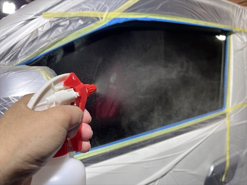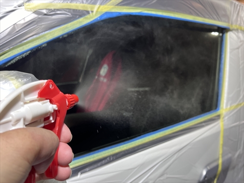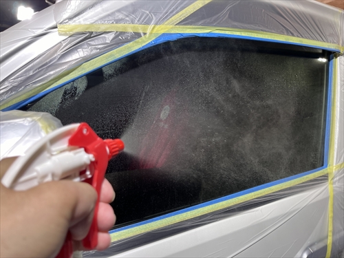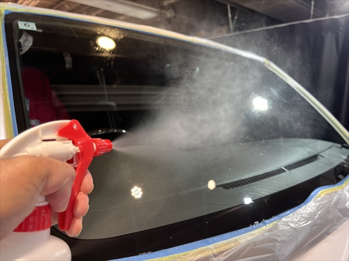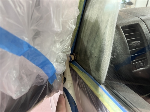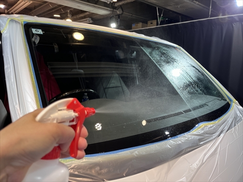ボディを汚さないようにキッチリ養生したら、まずはガラスの状態をチェックしていきます。