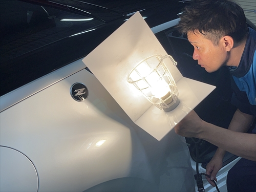 フィルム施工後は専用ライトを使ってチェックを行います。