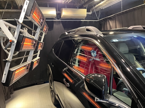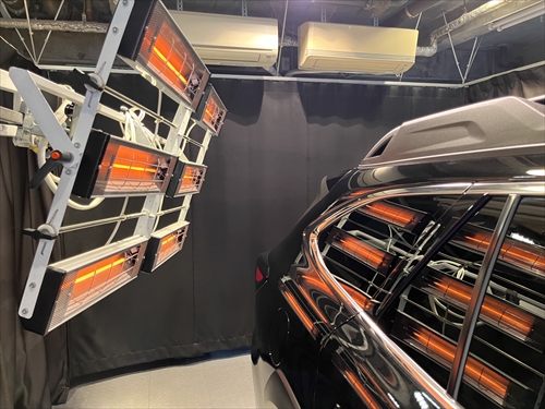 ガラス撥水コーティング施工後は、ヒーター乾燥処理をしていきます。