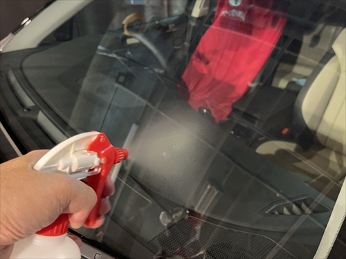再度フロントガラス全体に水を吹き掛けてみると・・・