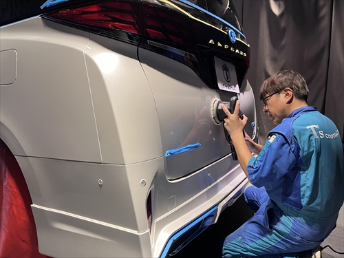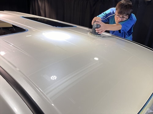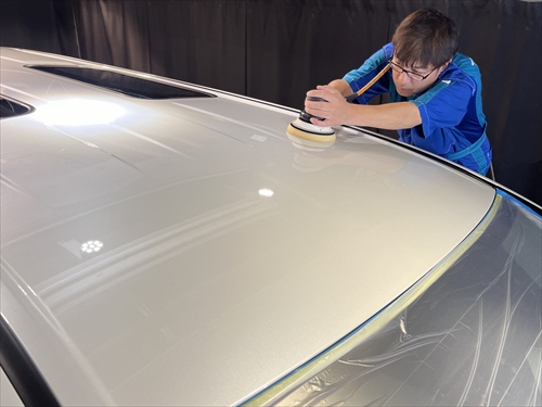 新車の塗装に極力負担を掛けない、いつもの研磨工法でツヤ・光沢をしっかりと引き出していきます。