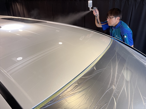 ボディ全体を磨いたら下地処理までが終了し、ここからやっとコーティング施工に取り掛かります。