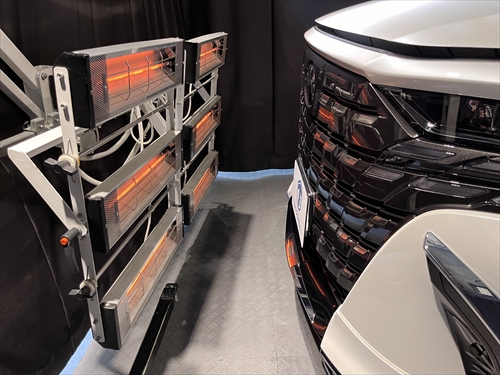 コーティング施工後はカーボンヒーターを使って1パネル毎温度管理しながら乾燥処理を施します。