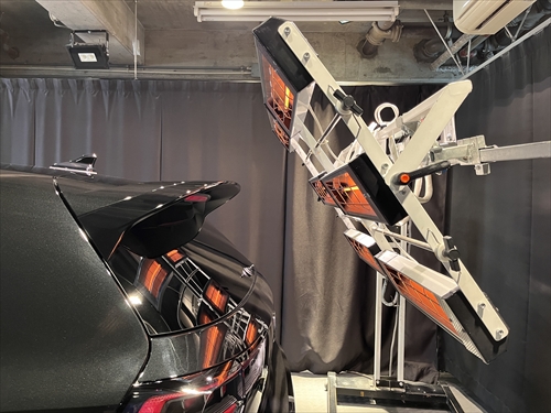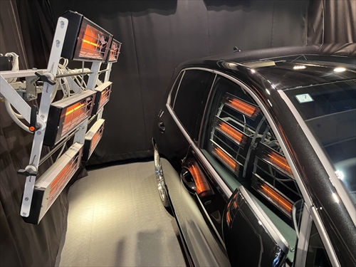 ガラス撥水コーティング施工後は、ヒーター乾燥処理をしていきます。