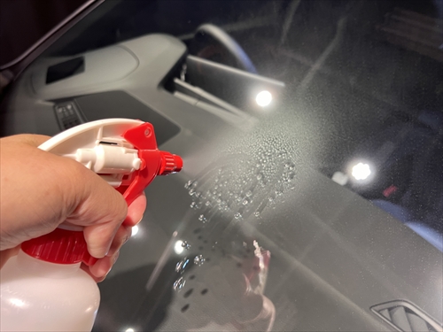 再度フロントガラス全体に水を吹き掛けてみると・・・