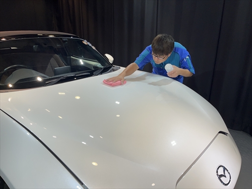 今回はトップコートメンテナンスをご依頼いただいていますので、防汚性UPコーティングSF はボディ全体に施工していきます。