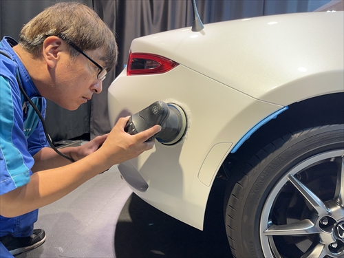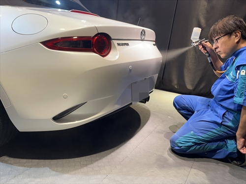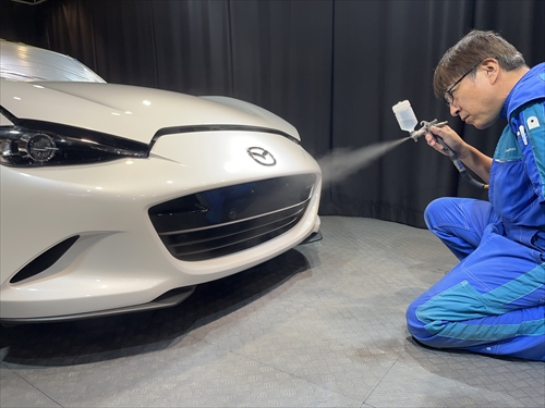 ベースコートでボディを保護したら、修理箇所にガラスコーティング TG を施工して防御被膜を形成していきます。