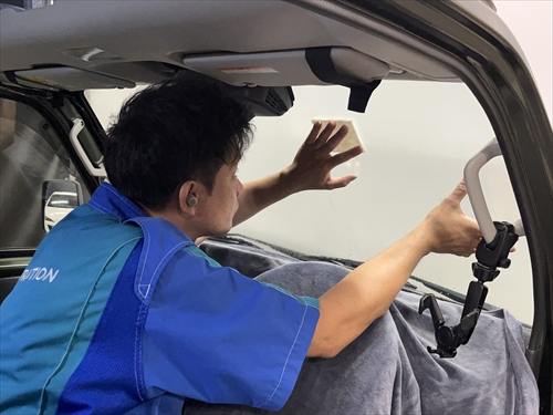 内張りの取り外しや養生等の準備を終えたら、フィルム施工に取り掛かります。
