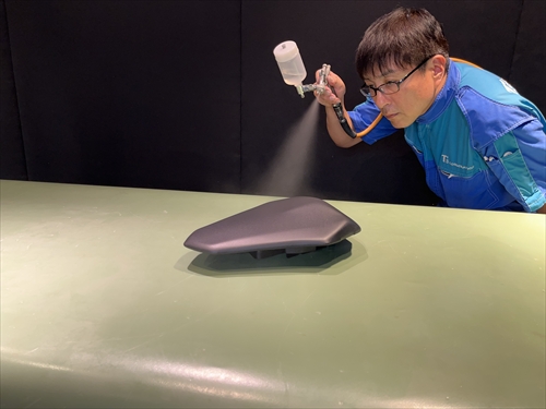 レザーシート2脚とベルト部分にレザーコーティングを施工していきます。