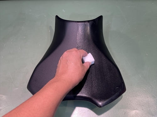 今回のようなバイクのシート等にはもちろん、自動車の場合は手油や皮脂汚れ等が付きやすいハンドル・シフトノブ・ドアハンドルや、乗り降りの頻度の高い運転席シート等はダメージをうけやすい部分ですので特にお勧めしたいところです。