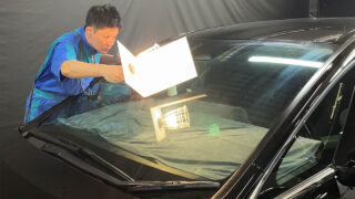 フィルム施工後は専用ライトを使ってチェックを行います。