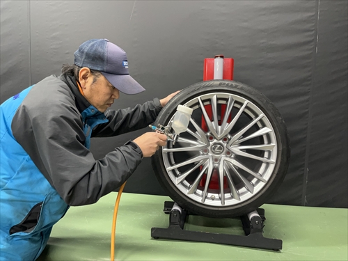 ホイールリペアが終わったら、次はホイールコーティングに取り掛かります。