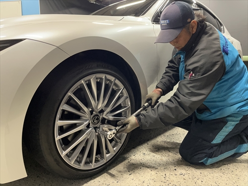 まずはタイヤホイールを取り外して状態のチェックをしていきます。