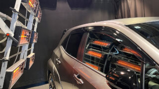 ガラス撥水コーティング施工後は、ヒーター乾燥処理をしていきます。