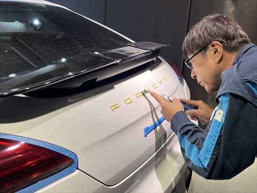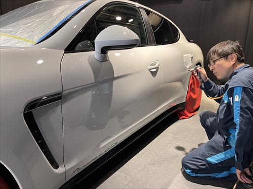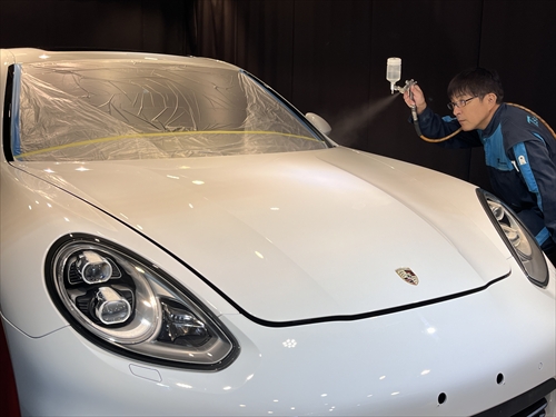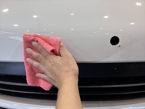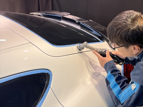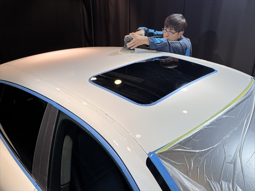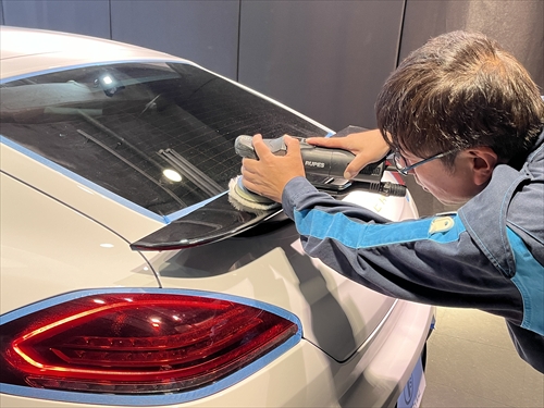 このボディ磨きによって塗装のツヤ・光沢を引き出した後、塗装強化処理を行ったら下地処理までが終了。