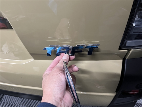 エンブレムもボディを傷つけないよう細心の注意を払って取り外しました。