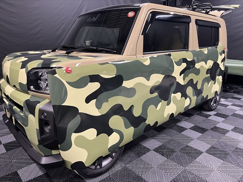 カーラッピングフィルム(迷彩柄グリーン)の完成をご覧ください。