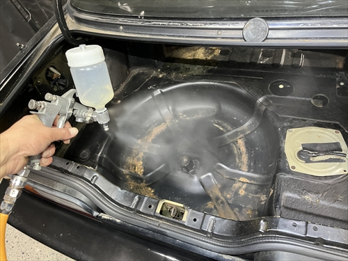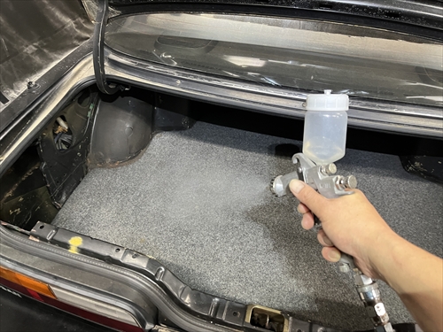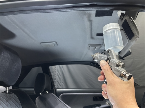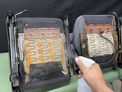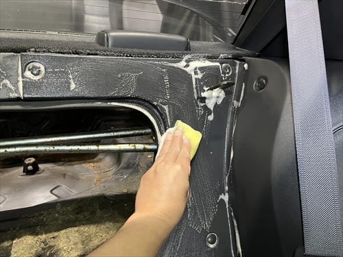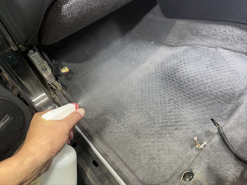 しっかりと乾燥させてシート等を元通りに取り付けたら、更に消臭剤を散布していきます。