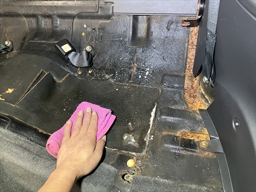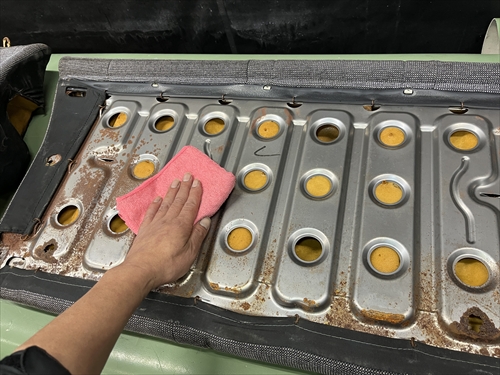 シートを取り外してみると、カビだけでなくサビも多い状態です。