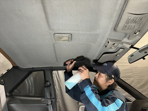 雨漏りによるカビをどうにかしたいとのことで、お客様とご相談させていただいた結果、車内クリーニングでできる限りの処理をしてみることになりました。