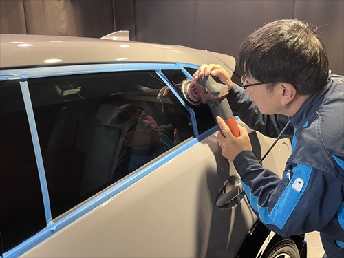 ダメージの受けやすいピアノブラックのピラー部分とドアカップに施工していきます。