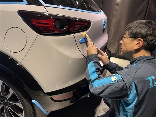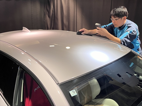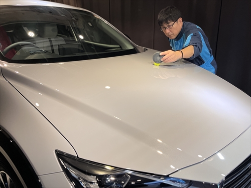 新車の塗装に極力負担を掛けない研磨工法でツヤ・光沢を引き出していきます。