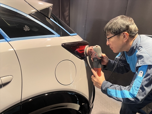 ボディ全体を磨いて塗装のツヤ・光沢を引き出した後、塗装強化処理をしたら下地処理までが終了。