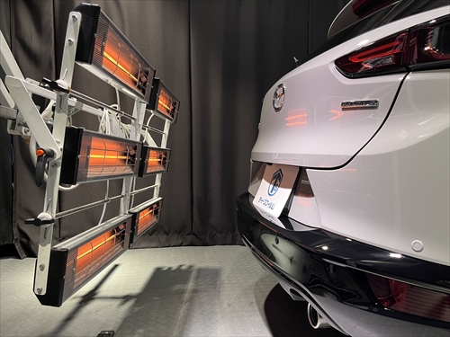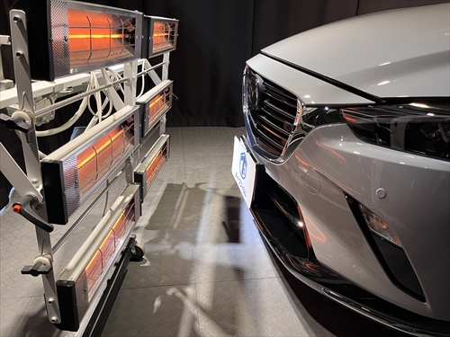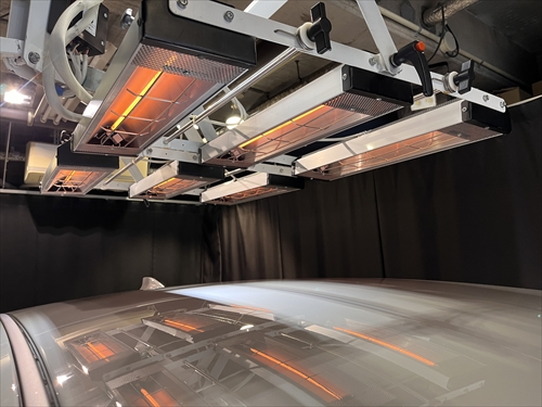 コーティング施工後はカーボンヒーターを使って、1パネル毎温度管理しながら乾燥処理をしていきます。