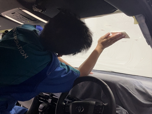 まずはフロントガラスから取り掛かります。