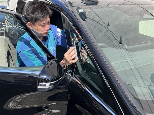 フロントドアガラスも丁寧に施工しました。