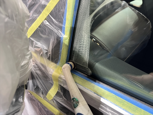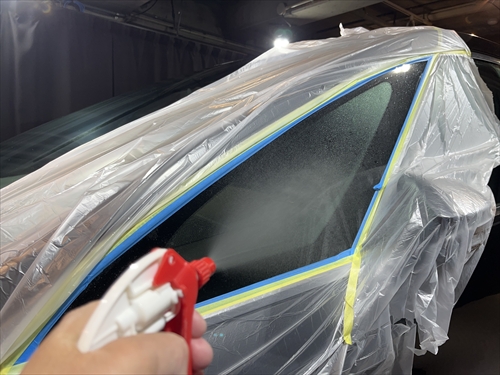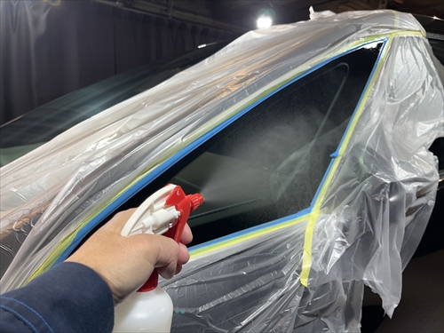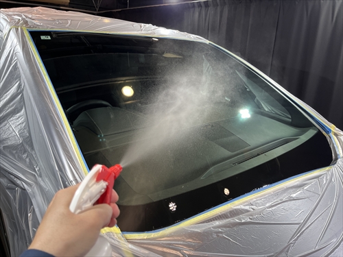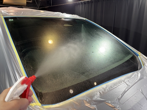 ガラス撥水コーティングを施工していきます。