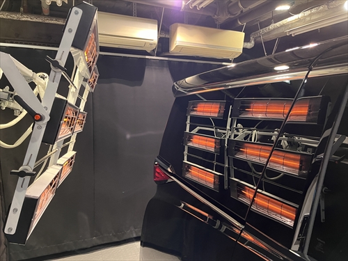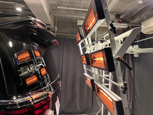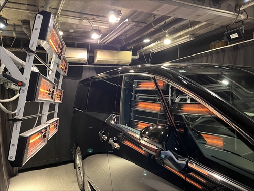 ガラス撥水コーティング施工後は、ヒーター乾燥処理をしていきます。