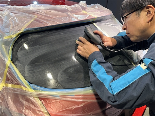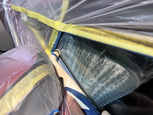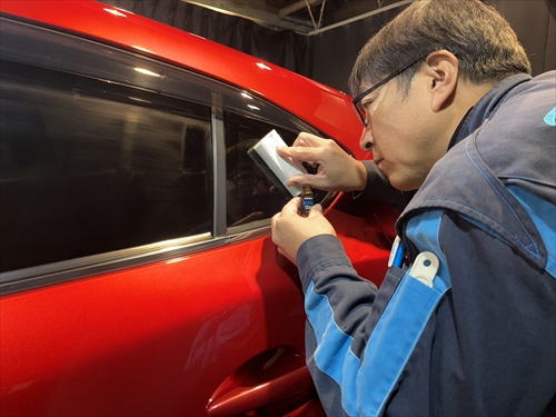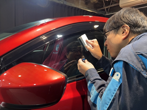 ボディを汚さないように養生したら、早速ガラスの状態をチェックしていきます。
