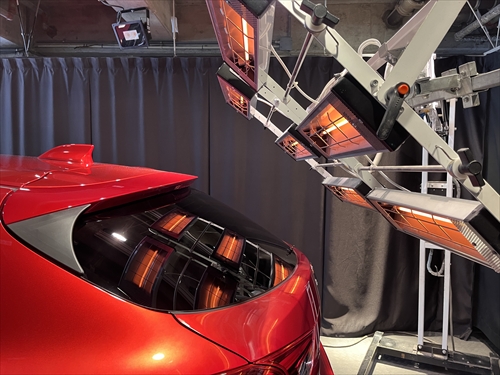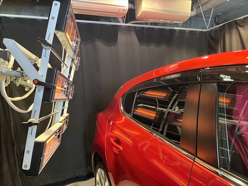 ガラス撥水コーティング施工後は、ヒーター乾燥処理をしていきます。