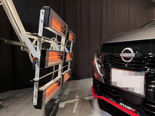 特殊照明を配置したコーティングブース内において、計器類を用いながらボディチェックをしていきます。
